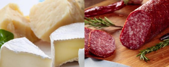 Seznam zahrnuje sýry a uzeniny.